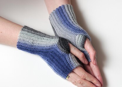 These mittens are both simple and nifty, with their cabled thumbhole. They are crocheted in back loop only slip stitches. The cable is worked horizontally - a technique that I invented.