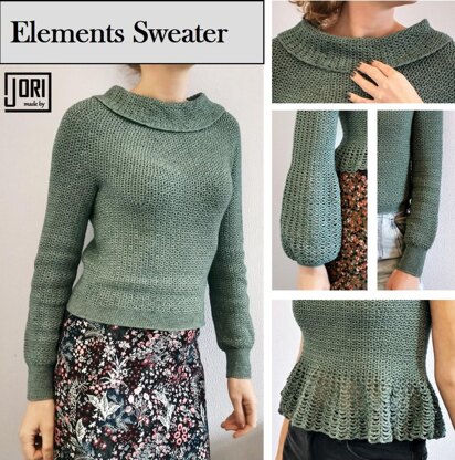 This pattern is for a top to which you can add 4 different elements: Add EARTH to make a simple long sleeves sweater. Add WATER to create a peplum top. Add FIRE to make the sleeves puff. Add WIND for a nice collar.