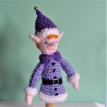 A versatile little elf. Basically a finger puppet but he also makes a charming Christmas tree decoration or a place name holder. Instructions for making him stand included. The pattern is mainly double crochet with increasing and decreasing. Some half trebles and trebles and working into front or bacck loops only.