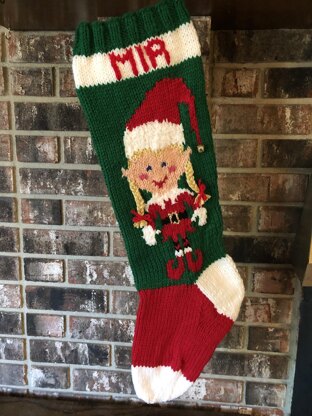 This adorable girl stocking is appropriate all ages and will be a keepsake for the lucky receiver. Knit with acrylic yarn and angora used for the brim of his stocking cap and top pom. You may also just sew on a pom on the top of the hat.