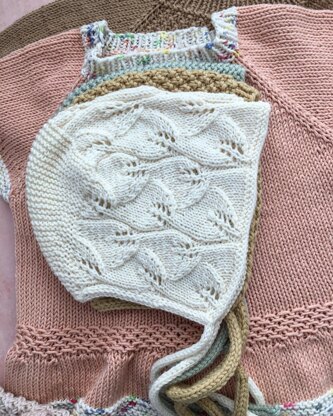 Simple design yet so classic and elegant. Elina Bonnet is knitted back and forth from the forehead towards the back. The back is knitted with short rows. After this, the attached I-cord is knitted along the bottom edge of the bonnet.