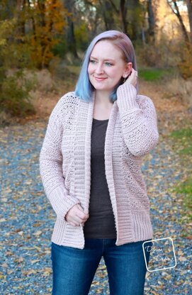 **Description:**Inspired by the simple and wave like texture of the Elinor Pullover and Elinor Cardigan, the Elinor Jane Cardigan builds on this line with more easy to achieve texture and large ribbed sections, making this cardigan a cozy new addition.