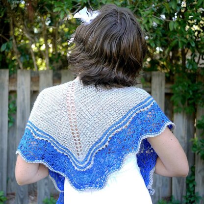 The garter stitch body gives way to lace that resembles the flowers of the stinging nettle. Choose one color or two, large or small. The shallow triangular body with a crescent shaped lace edge makes this reversible shawl extremely versatile and easy to wear in a variety of ways.