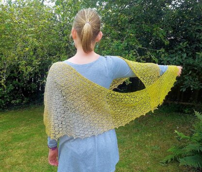 Eliza is worked sideways into an asymmetrical triangular crescent. An interesting beaded Estonian stitch combined with stunning lace makes an elegant accessory.