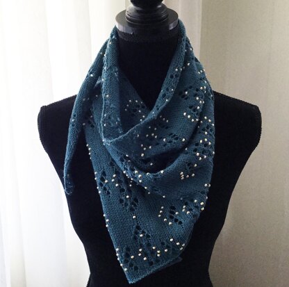 ***I am offering this shawl at only $3.00 until midnight on This pretty, beaded shawlette was designed in honor of my grandmother. In one of the few photos I have of her, she is wearing a single strand of pearls with a handknitted cardigan. I wanted to convey the same feeling of the pearls but I added the rich color tone of the blueberry YOTH "Mother" yarn. I love this yarn. It has super stitch definition, is comfortable to work with due to it's resiliency (springiness) of the domestic Rambouillet wool.