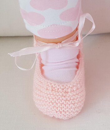 These 4ply garter stitch baby shoes have an optional i-cord or ribbon ankle tie. This style of shoe is also available in 3ply.