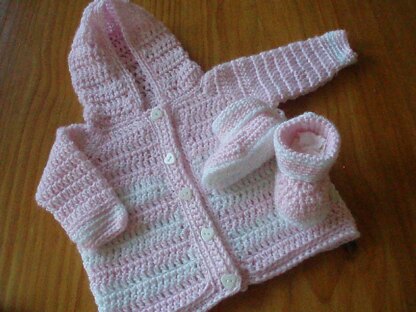 A baby girls hooded sweater with matching booties.