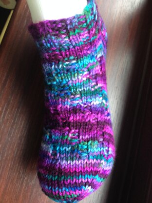 This is a knitting pattern for an short sock. It is knitted in the round with DK sock yarn. The length of the foot can be altered to fit.