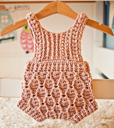 Cute little romper to make for your little one to keep her (or him) comfy and stylish! Perfect for photo shoots as well and excellent as a last minute gift. Works up really quickly!