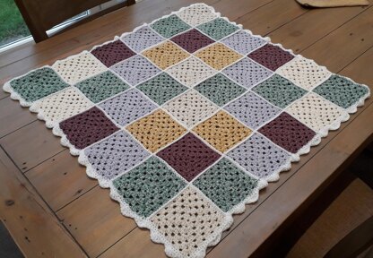 I absolutely love making things for the special people I know, so when my hairdresser of 15 years told me she was pregnant with her first baby I couldn't wait to get started on a few gifts. This is the first of many; I designed this blanket to be suitable for either a boy or a girl, and laid the coloured squares out in a pleasingly symmetrical design. I added a scalloped edge because I felt it looked more cosy and delicate, just ready to wrap around the eagerly-awaited precious bundle!!!