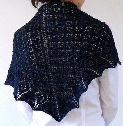 The "Elvish Singing" shawlette is inspired by the cheerful welcome Bilbo is given one evening as he approaches the elvish outpost of Rivendell.