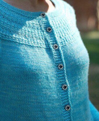 A few short rows, a hybrid circular/raglan yoke construction and a beautiful I-cord finish are some of the thoughtful features that enhance the fit of the yoke and neckline. The unusual textured stitch detail on the yoke, cuffs and pockets provide the perfect amount of understated sophistication, while the slight A-line shape of the body makes this cardigan especially comfortable and flattering.