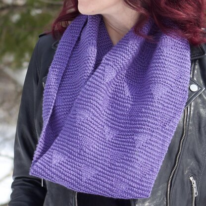 This 100% reversible pattern can be made as a cowl or a scarf. It's easy knitting, because it's mostly garter stitch. The pattern is made with stockinette stitch and reverse stockinette stitch triangles at regular intervals.