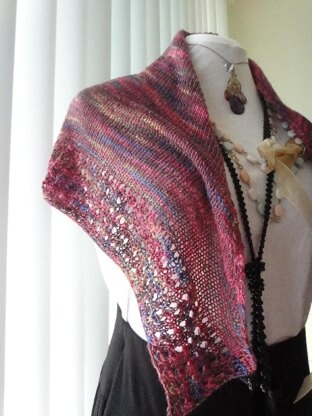 Embrace Me is a semi-circle shawl with Diamond lace border. Worked in this wonderful silk-blend yarn, the shawl is a perfect companion during hot summer days in July or fancy dinner parties at night.