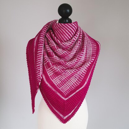 main color A: „Steffi’s Pink“ colorway, 134g, 536m (586yds) contrast color B: „Pas de deux“ colorway, 88g, 352m (385yds)