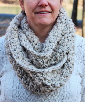 This chunky infinity scarf uses Thick and Quick or any other chunky yarn - works up quickly. Make tonight and wear tomorrow!