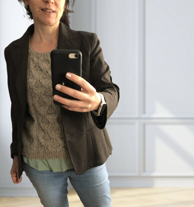 Emsworth is a classic slipover with a cute lace/texture pattern panel in front and at the back. First the back shoulders are cast on and joined after neck shaping is complete. The back is then worked back and forth to underarm. Front shoulder stitches are then picked up from the cast on and front is worked to the same length. At underarm both front and back are joined to work in rounds down to the hem. Neck and armhole finishing is worked last.