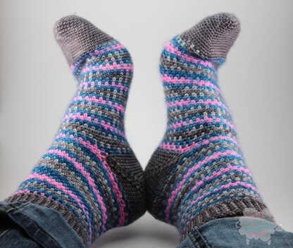 For a long time now, I’ve wanted to create a crocheted sock pattern – so I’d have a reason to get hold of the wonderful sock yarns I see online, which all seem made for knitters. Well here it is! The stitch is kept simple to bring out the beautiful colours of Crème de Laine’s Tutti frutti, and sizing is customized, based on your feet’s length and width. Warm up your crochets! Spring is upon us, but that’s no reason not to make yourself some socks! Any season is a good season to make socks!