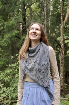 Get lost in the rhythm of the charming combination of lace and garter stitch. The soft lace pattern is eye-catching with its gentle curves. Do you see grass blowing in the wind or fern fronds? Pair the pattern with a luxurious yarn for some well-deserved self-pampering. Or go with your trusted favorite!