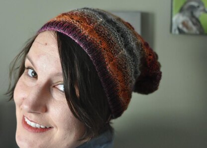 An extra long, rippled lace hat. Perfect for showing off that self striping sock yarn. Pattern is both charted and written.