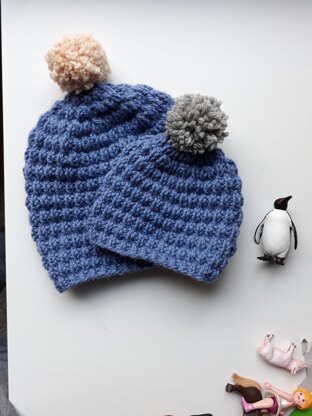 A perfect simple hat comes in a huge variety of sizes, quick and easy knit in a simple structure pattern, bottom up in the round. Optional you can add a pompom to your hat
