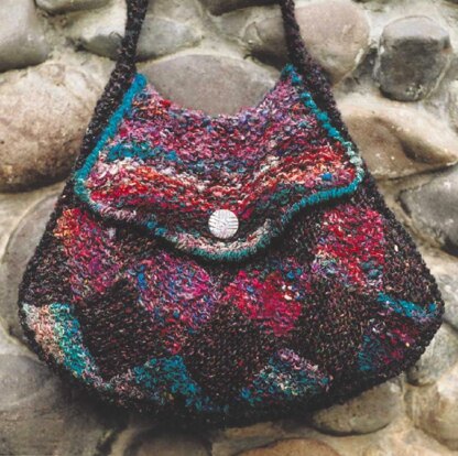 Shaped purse featuring the entrelac technique in seed and garter stitch; buttoned closing flap. Knit in 2 sizes in worsted or chunky weight yarn.