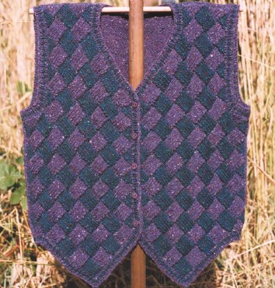 Classic, tailored style featuring the entrelac technique for vest fronts (the back is worked in stockinette stitch). Many knitters have made this pattern their first entrelac project!