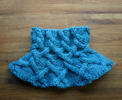 This cowl is the perfect project if you want to warm up soon! Big yarn and lots of cables create a thick, warm fabric, and it works up very quickly, knit seamlessly from the top down. Shaped to stand up around your neck and lay flat on your shoulders, it will keep you covered up and cozy.