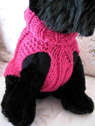 Great for beginner cable knitters. Easy to knit doggie sweater from the Celtic Doggie Designs collection. Simple construction, easy fit.