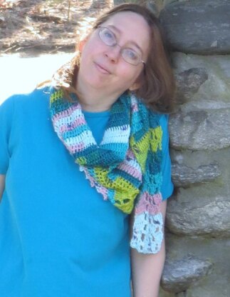 It's beautiful in the self-striping cotton Universal Yarn Cotton Supreme Batik (100 gr, 180 yds/165 m), but you can make this wrap using any yarn, any size hook, with any gauge, and make it to any size. I used two skeins for a sample measuring 10" deep by 70" long (after blocking).