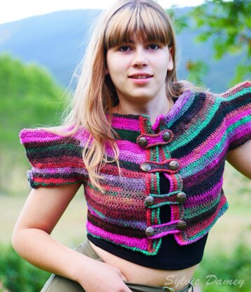 I had lots of fun designing the daring shoulder pads of this design and hope you’ll have as much fun crocheting and wearing it !!