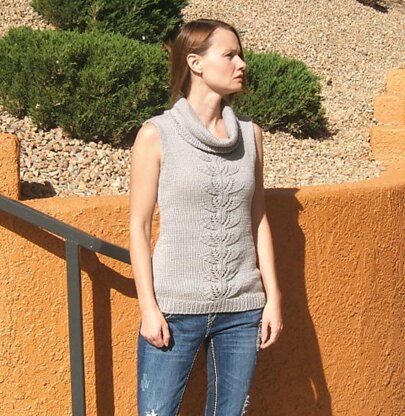 This cozy sweater vest, with a glamorous cowl collar and the luxurious softness of merino and silk, is perfect worn alone for the first cool days of fall, or as a layering piece on blustery days.