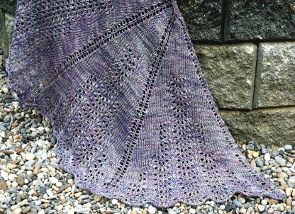 If you’d like to see full information about this pattern, please visit http://www.ravelry.com/patterns/library/escalope . . . . . . . If you’d like to see other work by Kourtney Robinson, please visit her designer page here http://www.ravelry.com/designers/kourtney-robinson . . . . . . . Escalope is a half octagon, but it will be familiar to any who have worked top-down triangles. The 'tab-top' beginning is similar, but there are four panels with increases on every other right-side row (instead of two panels with increases on every right-side row). A good intro to lace; the instructions are fully written and fully charted. Each is complete in and of itself, however I’ve taken care to make sure that rows are the same (within sections) from written to charted instructions, so you can cross reference between them. I was inspired by the shells of scallops, and I decided to name this shawl Escalope, which is the Old French word for shell and the basis for the word scallop.