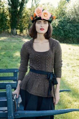 Esme is a stunningly beautiful jumper with cable knit detail, gorgeous shaping, flattering neckline and long sleeves. The pleated hem is emphasized with textured panels creating simple sophistication and an hourglass shape and the neckline is enhanced further with a wonderful, princess style, fold-back collar. This isn’t all this design can offer you; the pattern also includes a sleeveless and collarless version so that a significantly different garment can be made from the same pattern. Knitted on 4 mm circular needles (alternatively straight needles with circular needles for collar). Tension: 20 sts and 29 rows to 10 cm square over Stocking Stitch.