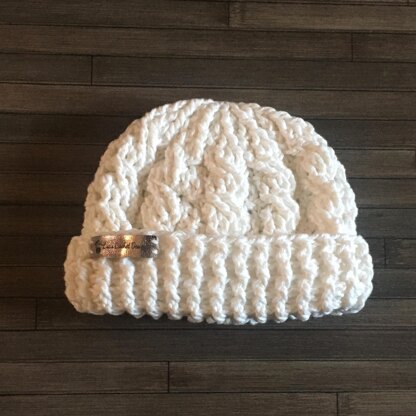 ETHAN CABLED CROCHET HAT PATTERN PDF in 9 sizes Prem to 8-10 Years. Hat is made seamless in the round top down and easily adjustable. Unisex - Boy or Girl. DIY crochet baby gift.