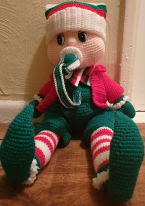 We would like to introduce to you 'Ethan The Elf Baby', he's worked in DK (8PLY), is worked in basic stitches and rounds, is written in U.S terminology and stands at approximately 18" in height.