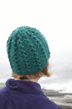 This is a bulky-weight, bottom up, seamless adult hat with eyelet-lace ridges for interest. For real interest, though, the knitter works the hat inside out and then reveals the public side at the end. This construction takes advantage of the easier k2tog and ssk over the p2tog and ssp stitches to make the interesting texture of the ribs. The name comes from a small cactus – actually a cactus lookalike named “spurge” – that I saw at Longwood Gardens while visiting my grandmother. This hat was knit that afternoon while enjoying the early spring Gardens.