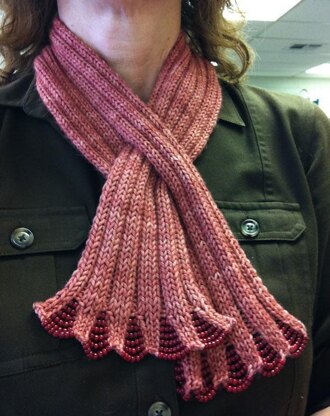 | One size only: | After blocking: 31" long- 3" wide (unstretched) at center of scarf (NOT beaded edge) |