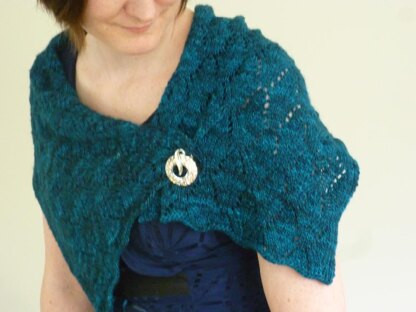 Eventide is lighter weight lacy scarf that can easily be tucked inside your bag for the day and then worn in the cooler evening weather. It maybe worn around your neck or pinned around your shoulders.