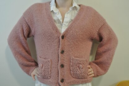 This pattern would be great for an advanced beginner who is comfortable knitting flat and in the round, knows how to pick up stitches, and wants to try out some new decorative stitches! The sweet patchwork pockets with flower details are my favorite part of this sweater, and come together surprisingly quickly.