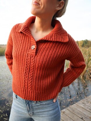 The Evermore Pullover is a crochet sweater that features a cropped fit, extended button collar, cable-inspired decorative detail, and wide ribbing. This effortlessly wearable statement sweater will add a striking and unique touch to your cold-weather wardrobe.