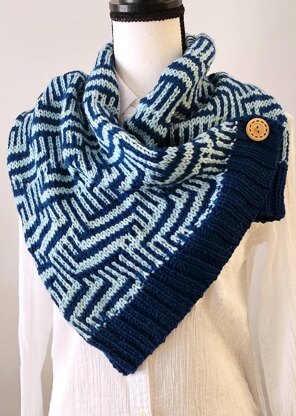 Cowl is knit flat using one color at a time and a combination of slipped stitches to achieve a fabric that only looks complicated.