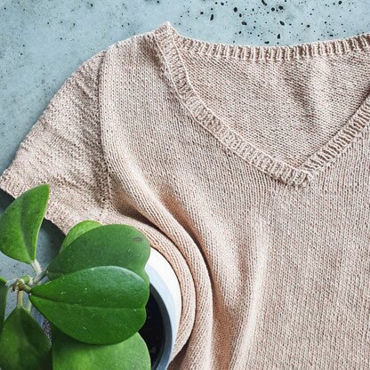 The Everyday V is knit from the bottom up in the round. Once you reach the armholes, front and back are worked separately, then the shoulder stitches are knit together using a three-needle bind-off technique.