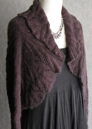 A shawl-collared shrug, Eve's Ribs uses my own Adam's Ribs wandering rib stitch pattern over the back and arms and it's own lacey variation for the front and collar. Both stitch patterns are easy and reversible.