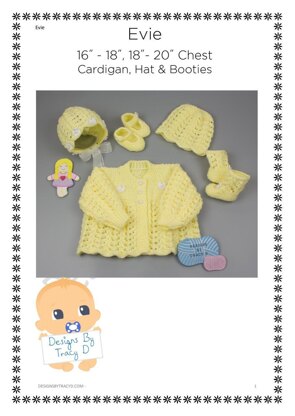 Evie baby knitting pattern matinee coat, bonnet, shoes/booties