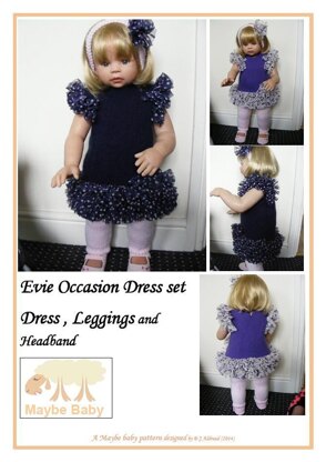 This is the perfect outfit for weddings and parties with it's frills and ruffles It comprises of Dress with leggings and a matching headband to finish the look It is knitted in DK and Chiffon scarf yarn and the requirements are detailed below