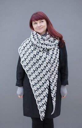 This shawl design is another reiteration of my ever-growing family of exaggerated slip-stitch patterns. Closely related to KORO-KORO, this shawl however features an asymmetrical elongated shape, which some will find easier to style and customize! Three color stripes are arranged to create 6 distinct fabric sequences to appeal to every level of taste and preference. Once again rhythmic and easy to follow pattern which becomes enjoyable and fun as you see it emerge!