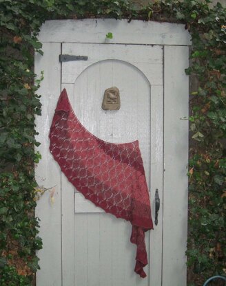 The shawl is knit from the top down and uses one stitch pattern throughout.