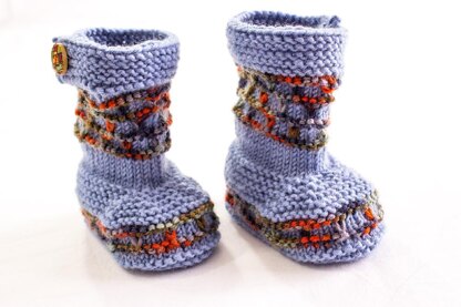 This pattern is for a pair of adorable side buttoned high top booties designed to fit babies from about 3 to 9 months. The sole measures about 10 cm or 4 inches.