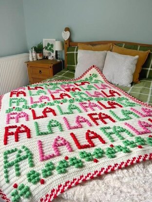 A stunning blanket featuring a festive 'Fa La La' design! If you love Christmas as much as I do, then this is the blanket for you. The pattern written works up quickly and is a lovely rhythmic pattern making it the perfect Christmas gift for your loved one.